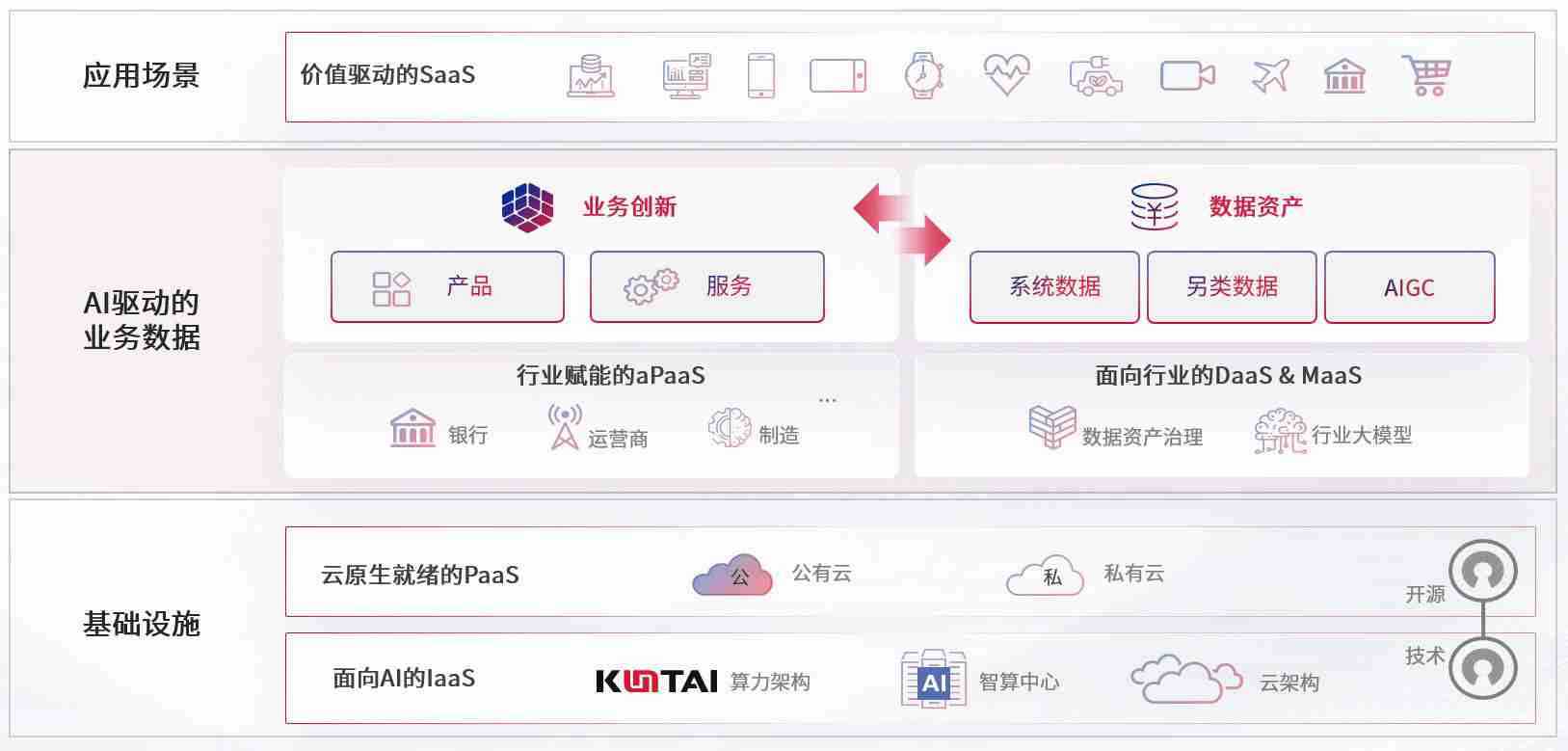 数字时代,,,,围绕企业数字化转型的关键要素,,41660全球赢家的信心数码开创性的提出数云融合战略和技术体系框架,,着力在云原生、、、数字原生、、、AI原生和信创产业上架构产品和服务能力,,,为处在不同数字化转型阶段的快消零售、、、、汽车、、金融、、、、医疗、、、、政企、、教育、、运营商等行业客户提供泛在的敏捷IT能力和融合的数据驱动能力,,构建跨界融合创新的数字业务场景和新业务模式,,,助力企业级客户建立面向未来的核心能力和竞争优势,,,全面推动社会的数字化、、、智能化转型升级。。。